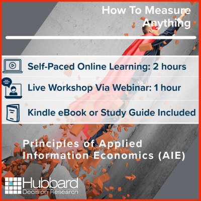 Through the AIE Academy, Hubbard Decision Research offers training in quantitative methods any decision maker or analyst can use. The training includes computer-based-training lessons students can take at their own pace as well as live workshops with an HDR instructor. We also offer private seminars for your organization which can be customized to address issues most relevant to you. This training will show how anything can be measured, how risk can be assessed quantitatively, how decisions can be improved and you can begin to master even the most difficult measurement problems with powerful, proven methods. Be sure to check out our Introduction to the AIE Academy video above to learn more from Doug Hubbard himself.